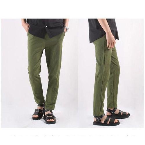 [에이치플러스몰]커플 남자 긴바지 린넨 밴딩 9부 여름 바지 남성하