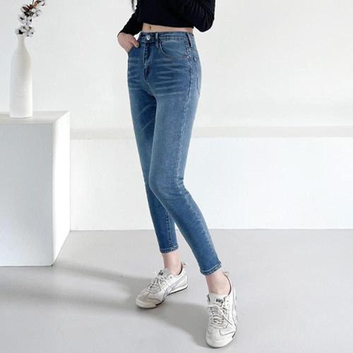 [에이치플러스몰]워싱 하이웨스트바지 스키니 일자청바지 데님바지 1P