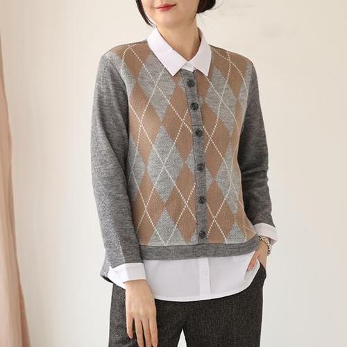 [웬디즈갤러리]아가일 셔츠 레이어드 니트 /포근 겨울 코디 외출룩 TKN135