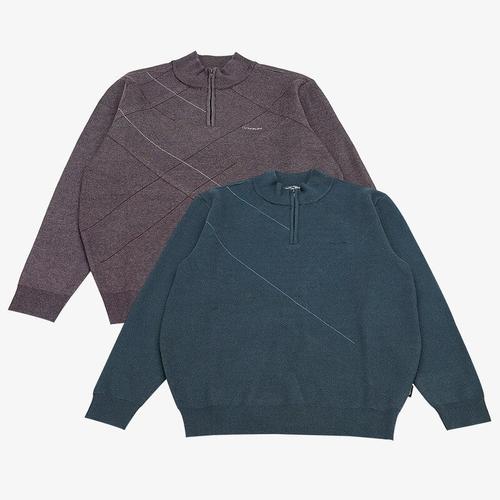 [크로커다일남성]CDAAAKR3317_아가일 하프 집업 라운드 니트