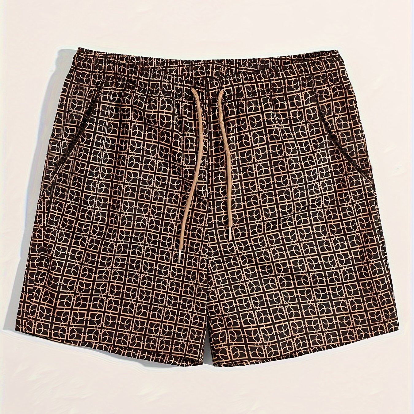 TEMU 남성용 루즈핏 기하학 프린트 드로스트링 반바지