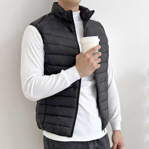 가벼운 보온 스탠드칼라 베스트 남녀공용, 두꺼운 패딩 조끼 부풀지 않는, 데일리 심플 잘 어울리는