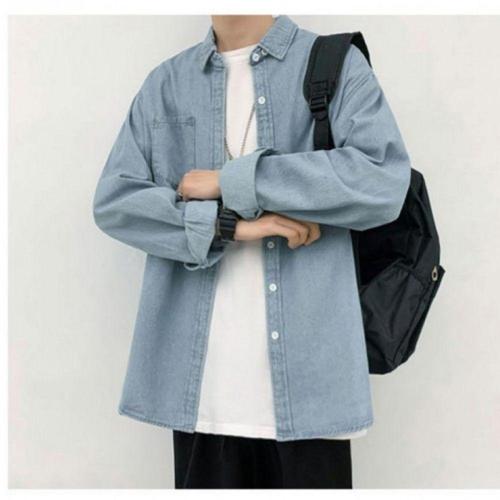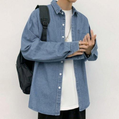 ANYOU 남성 데님셔츠 캐주얼남성 긴팔 셔츠 루즈핏 데님 코트