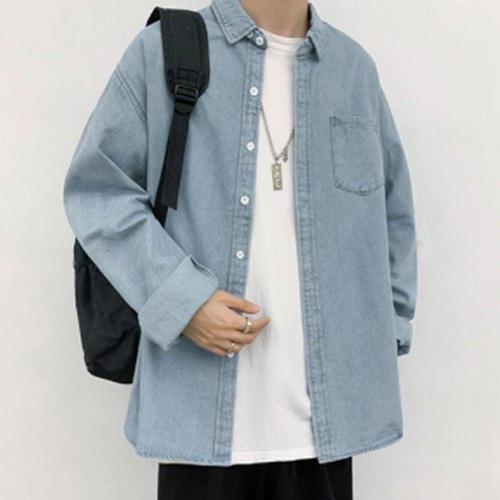 남성용 오버핏 데님 캐주얼 셔츠 청남방 WFLLYNG