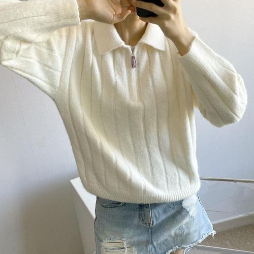 [기타브랜드]소프트 케이블 하프집업 카라니트 아이보리