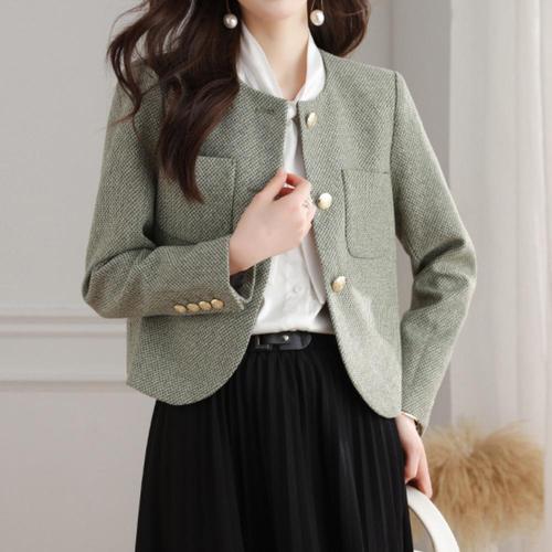 남자 트위드 쇼트 코트 남성용 어깨패드 프린지 짜임 트위드 자켓 봄가을 LCL