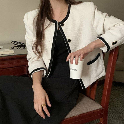슈팅스타 / 하객룩 울 클래식 심플 d이너f 배색 트위드 콤비 자켓