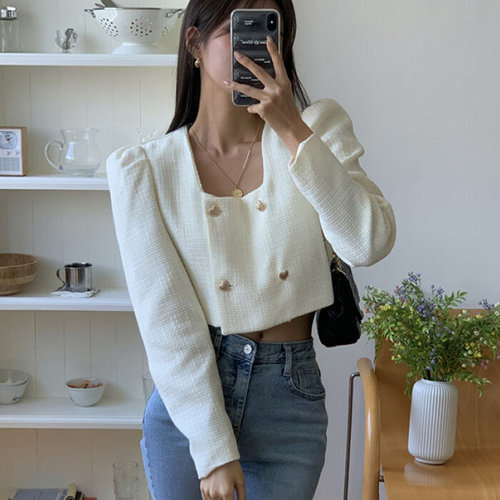 슈팅스타 / 하객룩 퍼프 스퀘어넥 diu 하트단추 트위드 자켓