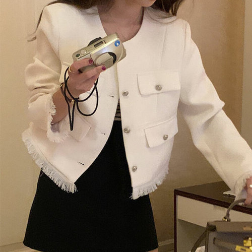 슈팅스타 / 태슬 소매 밑단 트랜디 트위드 자켓 160173