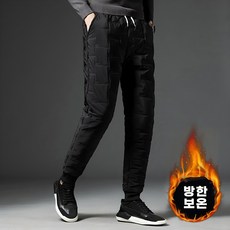 남성 털빠짐없는 겨울 두꺼운 방수 양털기모 조거형 일자형 작업 트레이닝 패딩바지