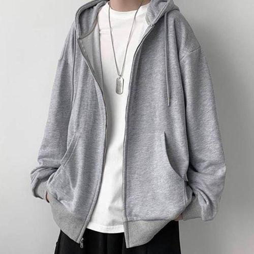 [에이치플러스몰]회색 후드집업 기본 후드 지퍼 자켓 무난한 패션 코디