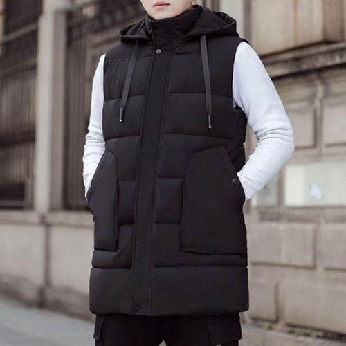 [에이치플러스몰]후드 롱패딩 조끼 베스트 남성 고급 베이직 캐주얼