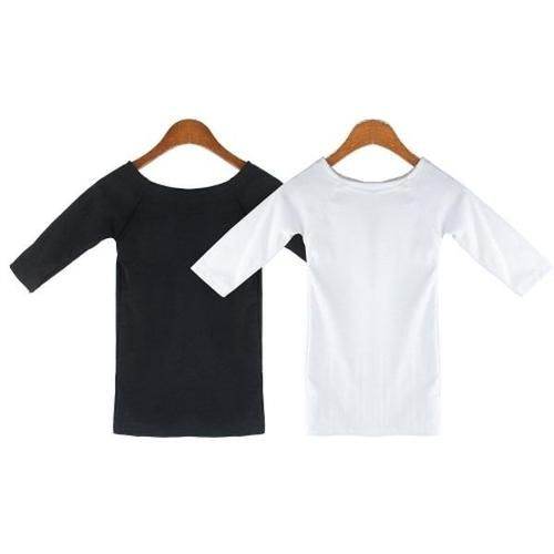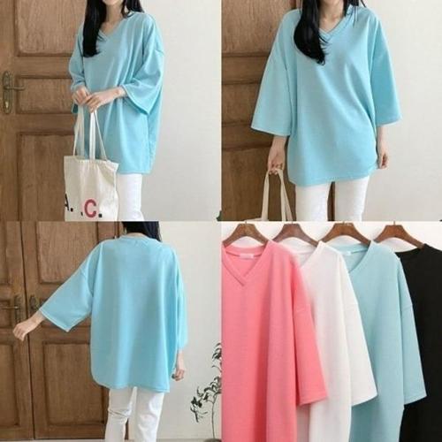 [비템]심플 미니멀 세미오버 슬릿넥 7부 티셔츠 3컬러 4사이즈