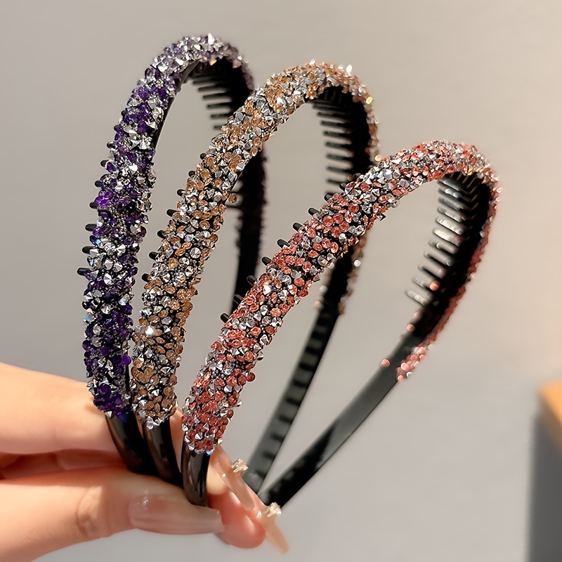 TEMU 3개 여성용 멀티컬러 반짝이 미끄럼방지 헤어 후프, 심플한 앞머리 정리 헤어밴드, 플라이어웨이 컨트롤,반짝이는 헤어 액세서리,우아한 디자인,내구성 있는 소재,다용도 헤어밴드,캐주얼 웨어,일상 헤어스타일링