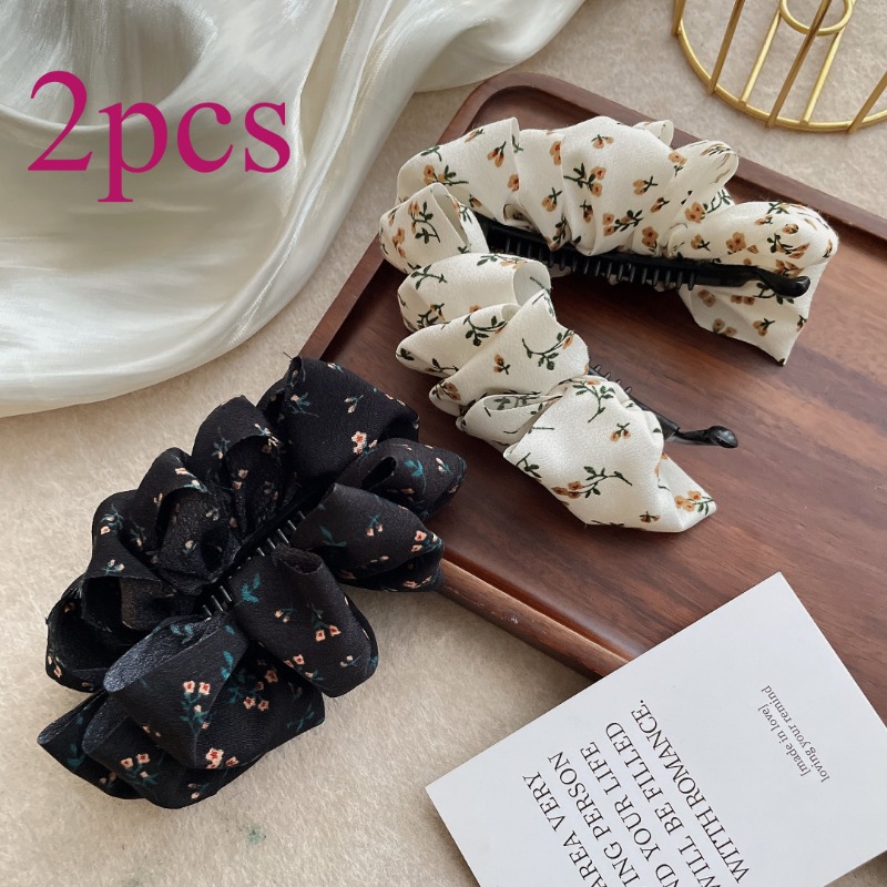 TEMU 2개 빈티지 플로럴 바나나 클립 - 미끄럼 방지 그립 대용량 헤어 클로, 여성용 레트로 스타일 헤어 액세서리, 태슬 디테일이 있는 우아한 디자인, 데이에 완벽한 여성용 헤어 액세서리, 데이 선물, 헤어 클립, 미끄럼 방지 그립 클립, 바나나 헤어 클립, 여성용 작은 클립