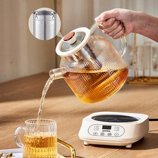 내열유리 대용량 전기 티포트 스텐 보온포트 차탕기, 베이지
