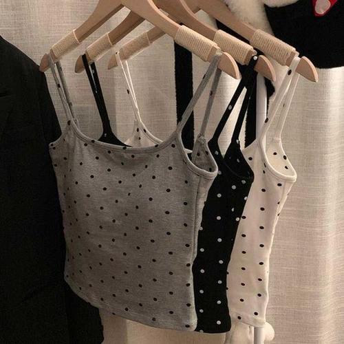 [셀러허브_여성트랜드패션]Rly 도트 패턴 캡 내장 끈 나시 여름 바캉스 데일리