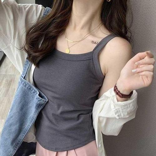 굵은 어깨끈 캡 내장 여자 데일리 볼륨 업 나시티