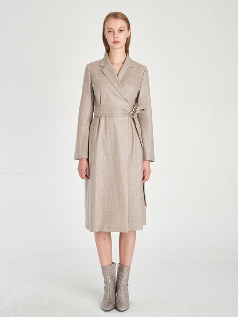 [프릭스] [리퍼브]미니멀 디자인 너치드 라펠 울 100% 랩드레스_Melange-Oatmeal