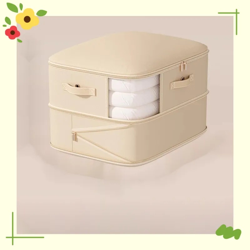TEMU 1개 공간절약형 이중층 수납백, 투명창 있는 두꺼운 통기성 사각정리함 지퍼포켓 - 의류·베개·가정용품·주방용품··옷보호대에 적합한 다목적수납박스. 홈오거나이저, 클로젯조직자, 이중레이어디자인, 강화된솔기, 내구성있는원단