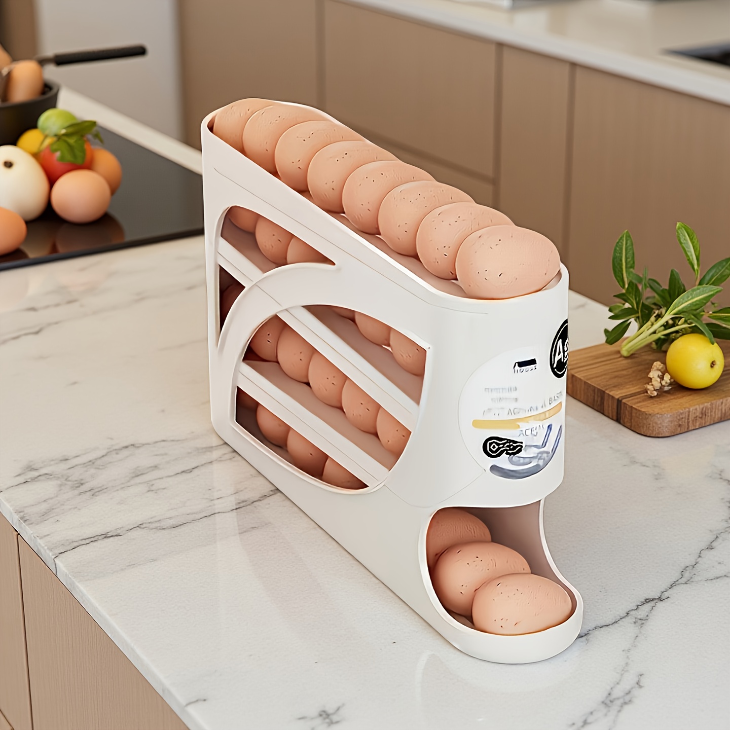 TEMU 3단 크림화이트 이동식 계란 수납용기 - 24개 보관, 공간절약형 PVC 내구성 냉장고 문걸이 정리함 (대용량 주방/프리저 사용)