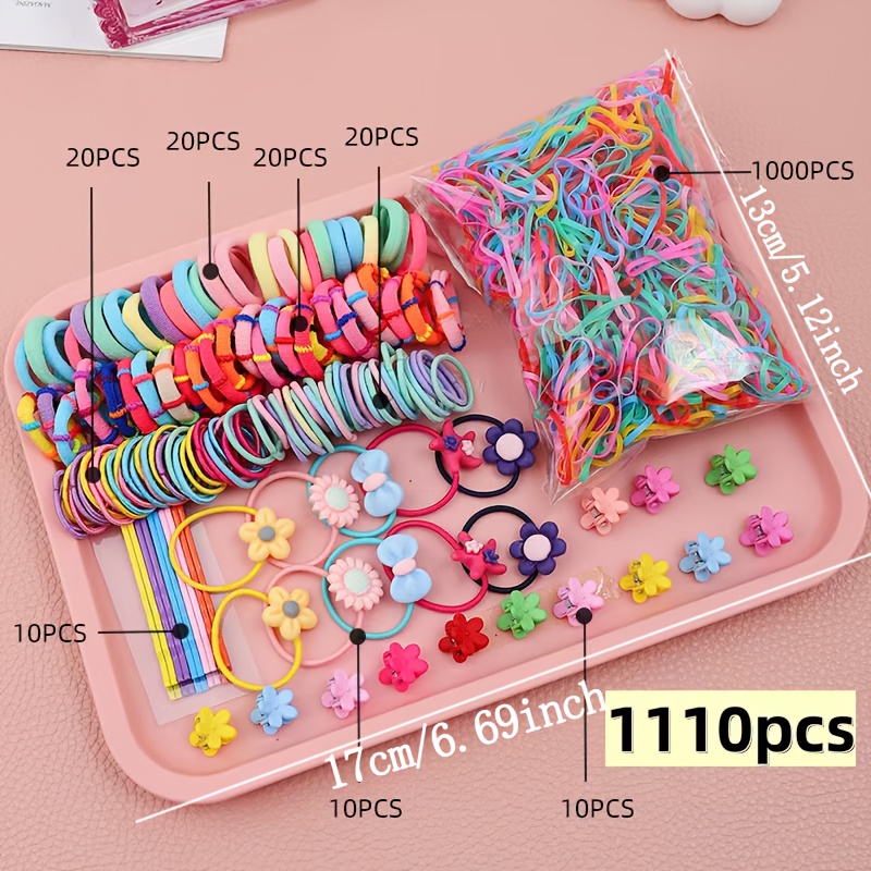 TEMU 1110개 여아용 헤어 액세서리 세트 - 무손상 헤어 타이, 리본 클립 & 고무줄 - 학교, 파티, 일상 헤어스타일용 - 선물 박스 (개학, 졸업) - 헤어 케어