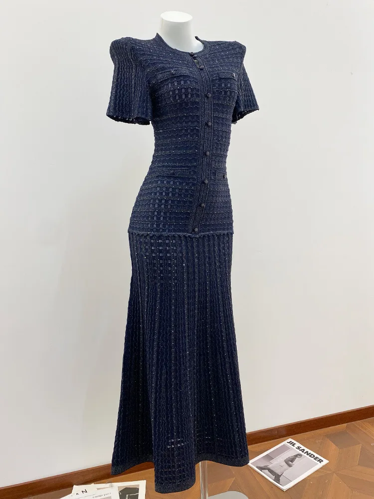 AP SS26 여성용 경량 데님 드레스 코튼 블랙 & 블루 맥시 드레스