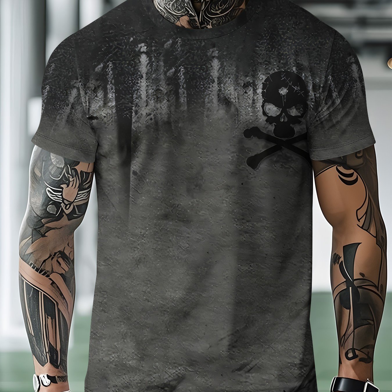 TEMU 남성용 야외 캐주얼 스포츠 티셔츠, 기하학적 패턴, 폴리에스터 원단, 레귤러 핏, 야외 레저 활동에 적합, 세탁기 사용 가능, 봄, 여름, 가을에 적합
