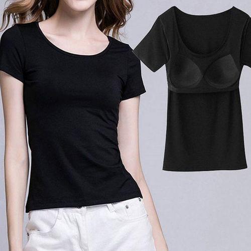 노브라 티셔츠 내장 캡 모달 스판 티 잠옷 홈웨어