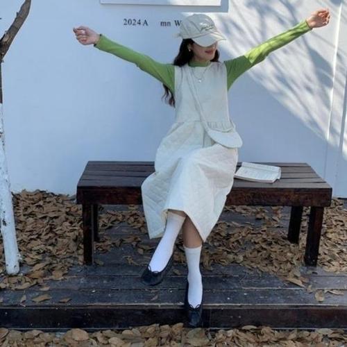 [엄지척]여성패션 그린니트+누빔 허리밴딩 나시 원피스 세트_19952980_667501