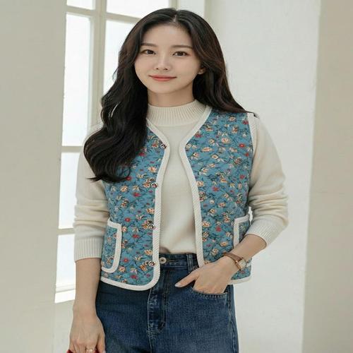 [에이샵][에이샵] 플라워 패턴 양털 안감 퀼팅 누빔 조끼_ASVT004W25