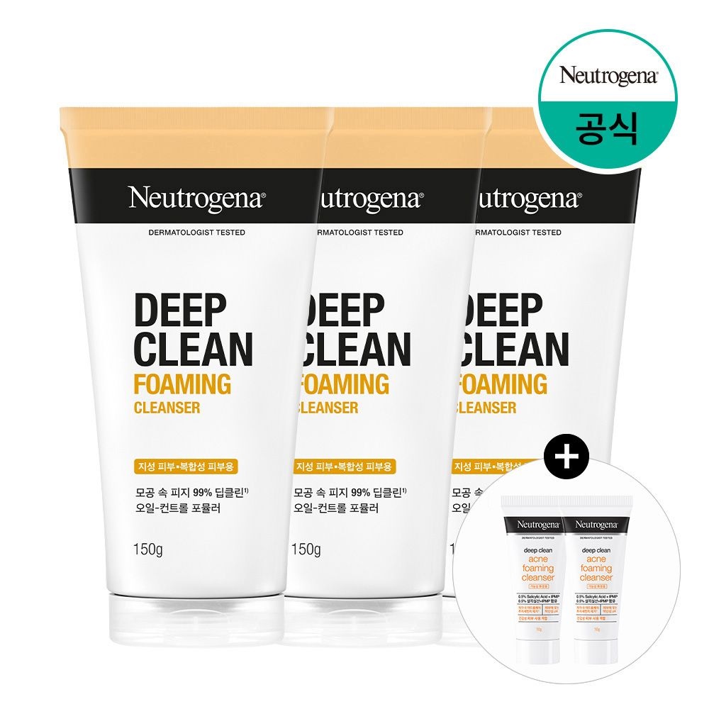 뉴트로지나 NEW 딥클린 포밍 클렌저, 150g, 3개 + 증정 (아비노 캄앤리스토어 오트 젤 모이스처라이저 6ml,2개)