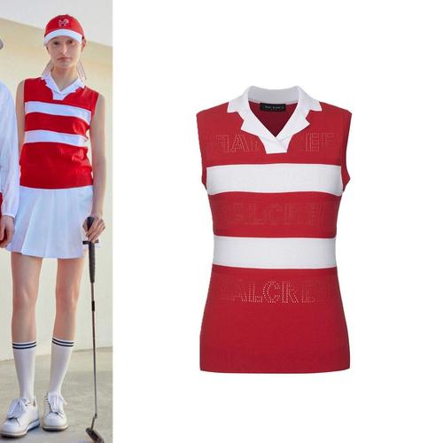 [힐크릭]여성골프웨어 여성니트 H412 여성 컬러블럭카라형베스트 1HCSWM4556RRED_SC