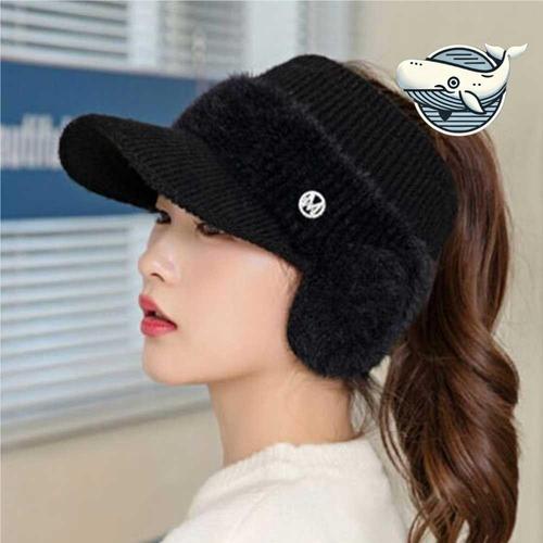 Hey 니트 썬캡 귀마개 모자 선바이저 골프 겨울 도리 털모자 여성 썬겨울