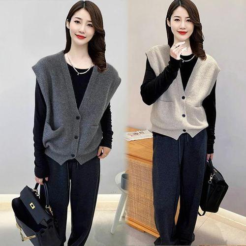 (55~88)3종세트 v넥케이블니트베스트 롱베스트 여성가을니트티 여성조끼 니트가디건