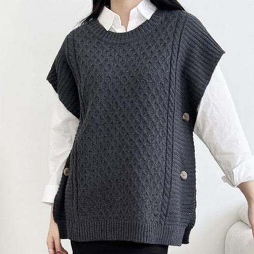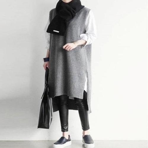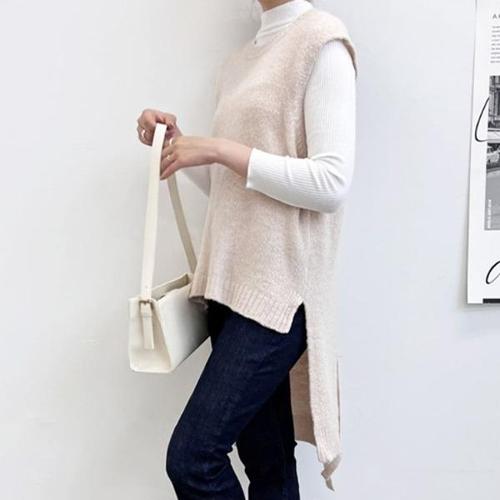 [엄지척]모던 스타일 여성 롱니트 베스트 브이넥 밑단 절개_20360963_667501