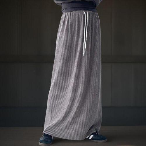 [신상오픈런]여성 골지 니트 롱스커트 스판 A라인 뒷트임 맥시 스커트