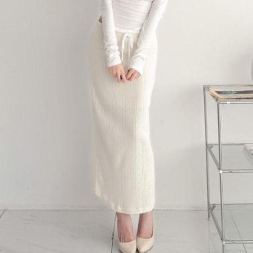 [신상오픈런]여성 로우웨이스트 니트 펀칭 롱 스커트 허리끈