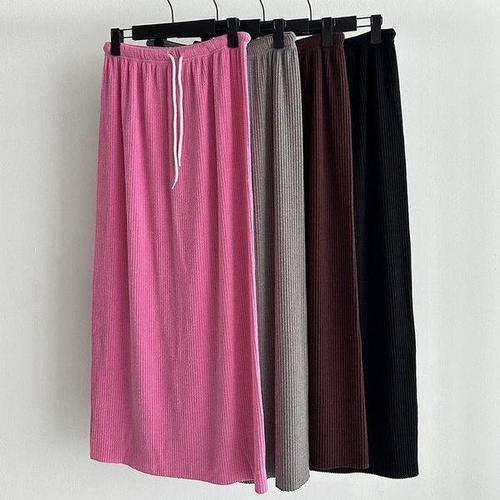 [미라클세븐]여성 골지 니트 롱스커트 스판 A라인 뒷트임 맥시 스커트
