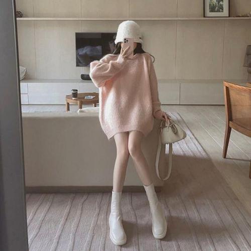 [에이치플러스몰]여성니트 터틀넥 루즈핏 오버핏 겨울 봄 니트 티 롱