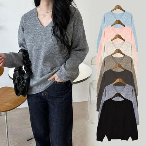 [에이치플러스몰]브이넥 코디 여자니트 신상 가을 여자니트티 롱니트