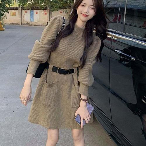 [오너클랜]인기상품 여성 반목 니트 허리벨트 포함 겨울 미니원피스 루즈핏 4색 [WFLL7ZK_260304]