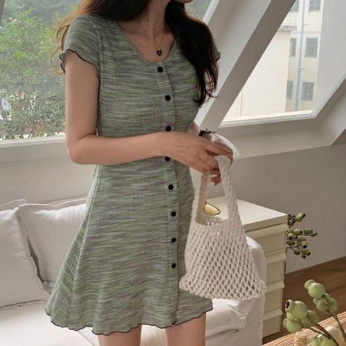[오너클랜]인기상품 블랙 여성용 신축성 롱 니트 원피스 여름용 반팔 미니 스커트 스타일 [WFLL9CI_260304]