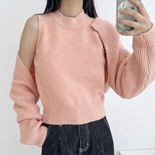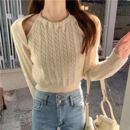 [에이치플러스몰]여자 긴팔 크롭 니트 나시 볼레로 세트 1P 여자 조끼