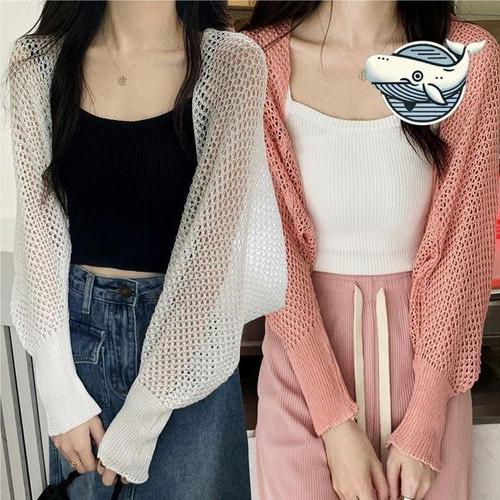 [에이치플러스몰]가벼운 가디건 여성 그물 시원한 니트 볼레로 여름