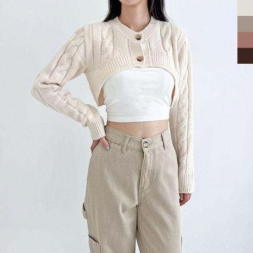 [최초가 99000원] 니트세트 버클 볼레로 가디건_LKCDF123T01