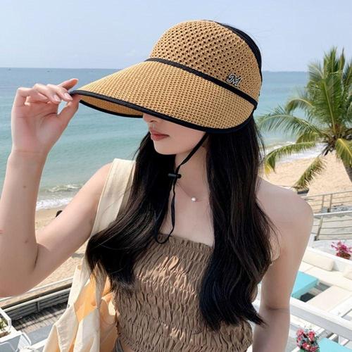 와이드챙 선캡 피부보호 돌돌이 M장식 니트짜임 썬캡 WF06CF7