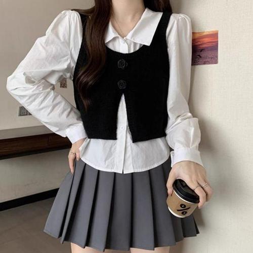 뷔스티에 니트베스트 셔츠 투피스 세트 TDN0112 WFNTW12