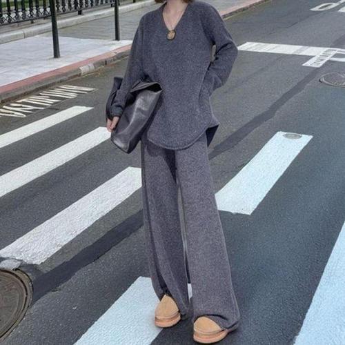 [셀러허브_여성트랜드패션]바지 니트 투피스 와이드팬츠 루즈핏상의 트레이닝복