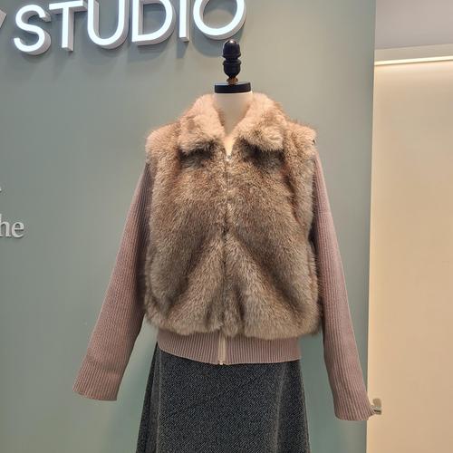 [시슬리]니트 배색 퍼 베스트 SALE34461